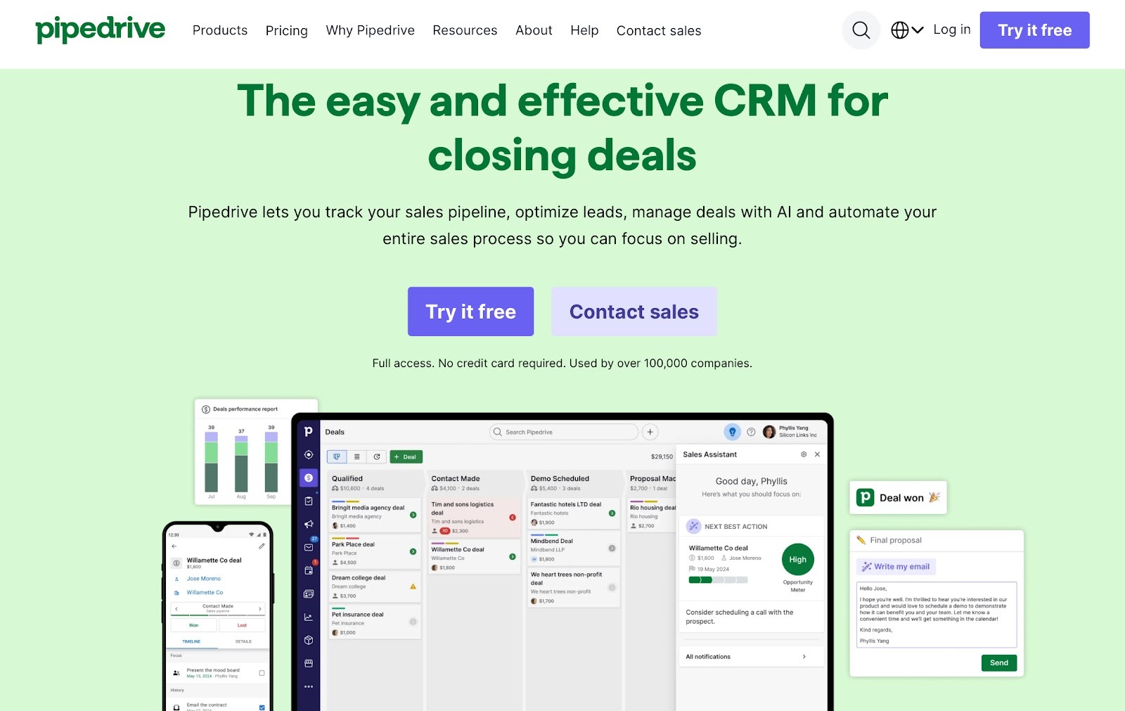 - All-in-one sales CRM that combines contacts, deals, communication, and reporting