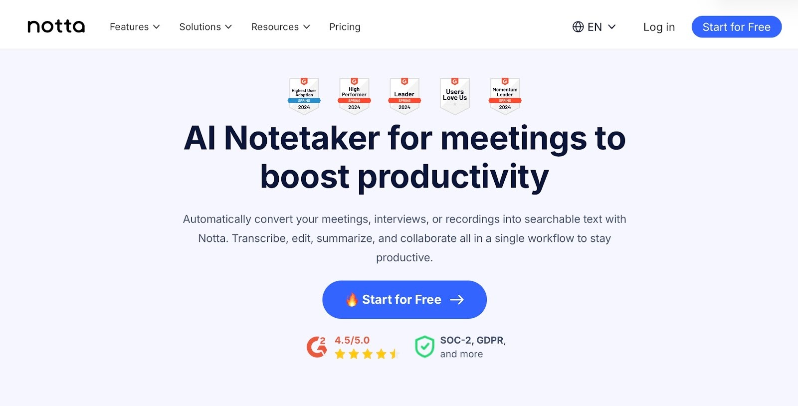 Notta suits teams whose main work happens in conversations. You start a call, open Notta in the browser or app, and let it record while people talk. It turns speech into a live transcript with speakers labeled, so you can follow along without typing.