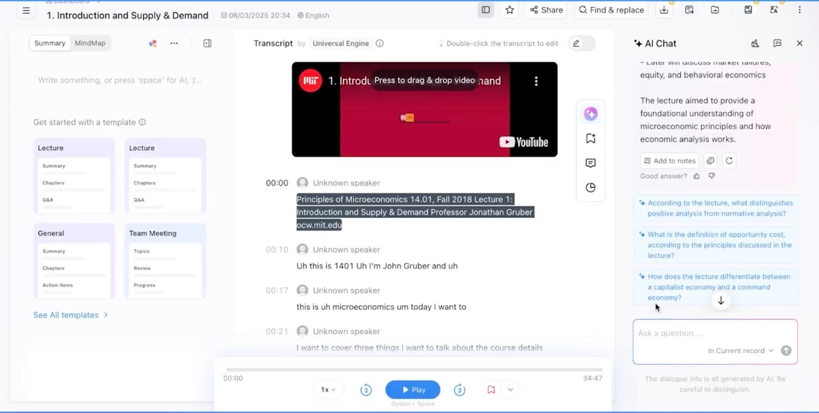 For classes, the Education Agent works similarly. I connect it to my calendar, let it join lectures, and handle note-taking while I focus on listening. It highlights key concepts and assignments, then generates a summary after class.