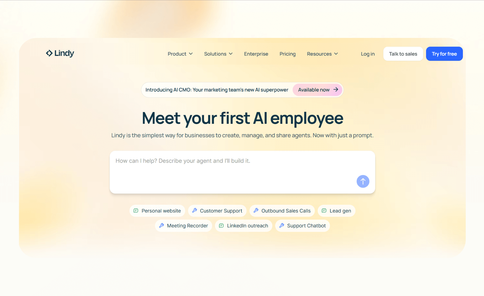 Lindy is an AI agent development platform that lets you create AI agents for different business workflows like emails, meetings, sales, lead generation, customer support, and more.