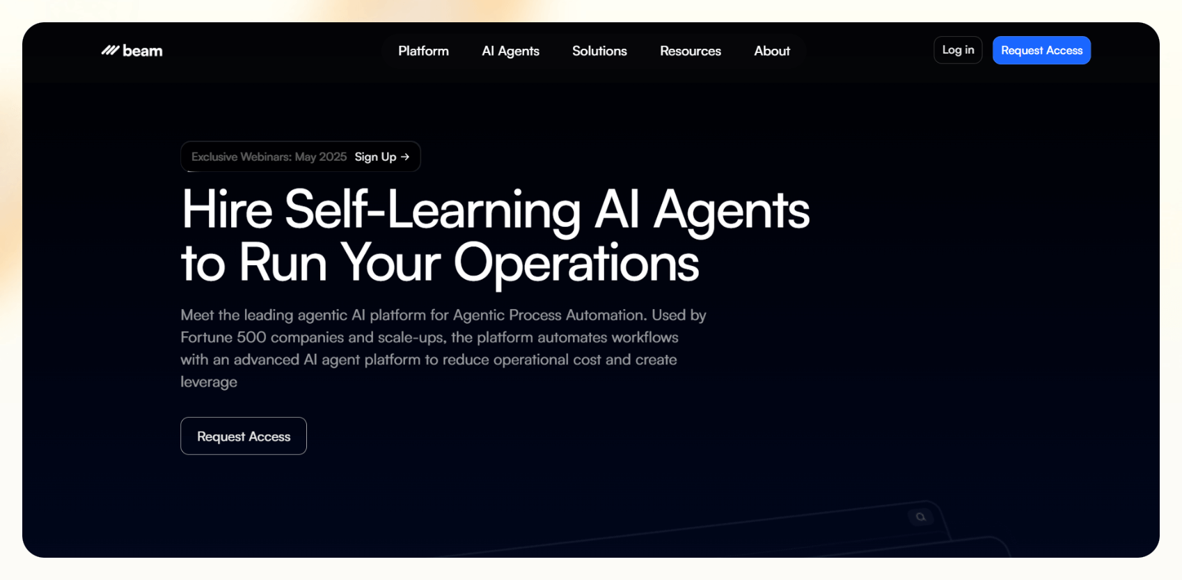 Beam AI is a newer AI agent platform focused on helping teams automate internal business tasks. It’s designed to simplify everyday operations like follow-ups, data entry, and task routing with smart workflows.