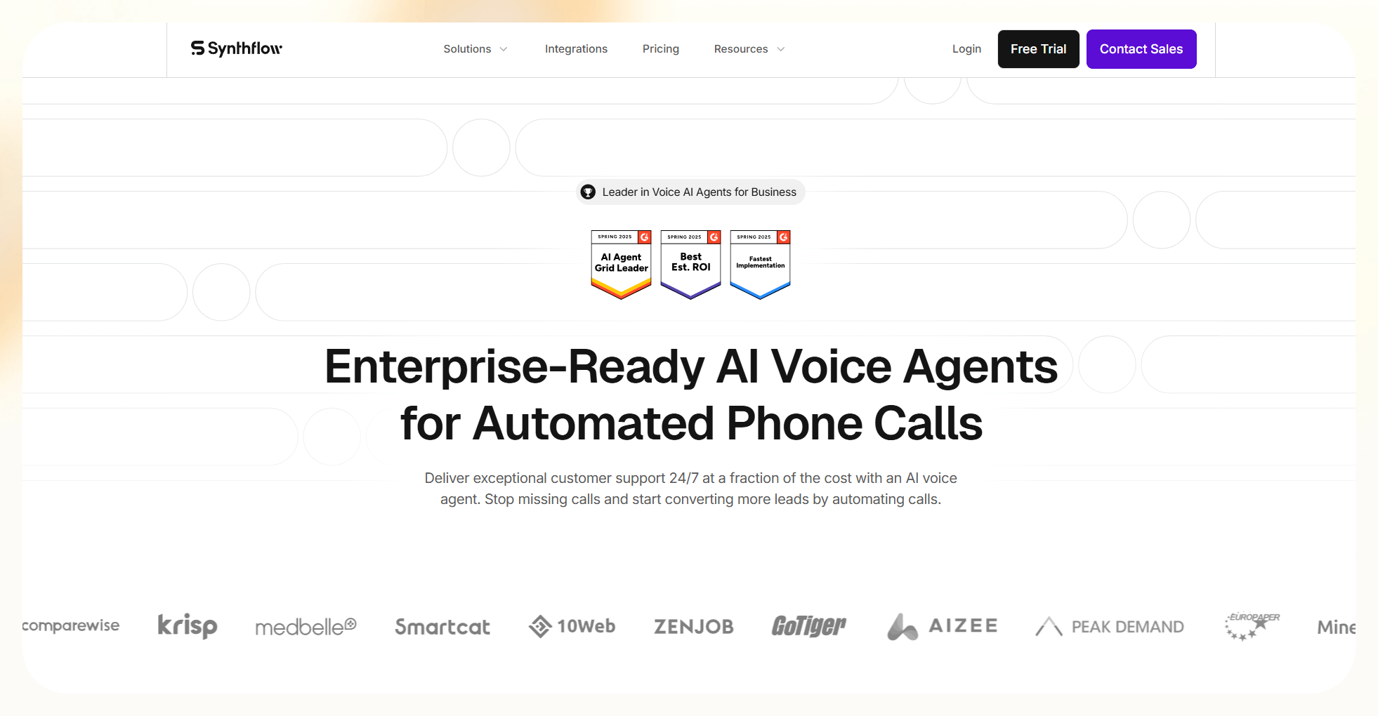 Sales teams, agencies, and small businesses that run regular outbound campaigns, but don’t need deep CRM or workflow automations, will find Synthflow a good match.