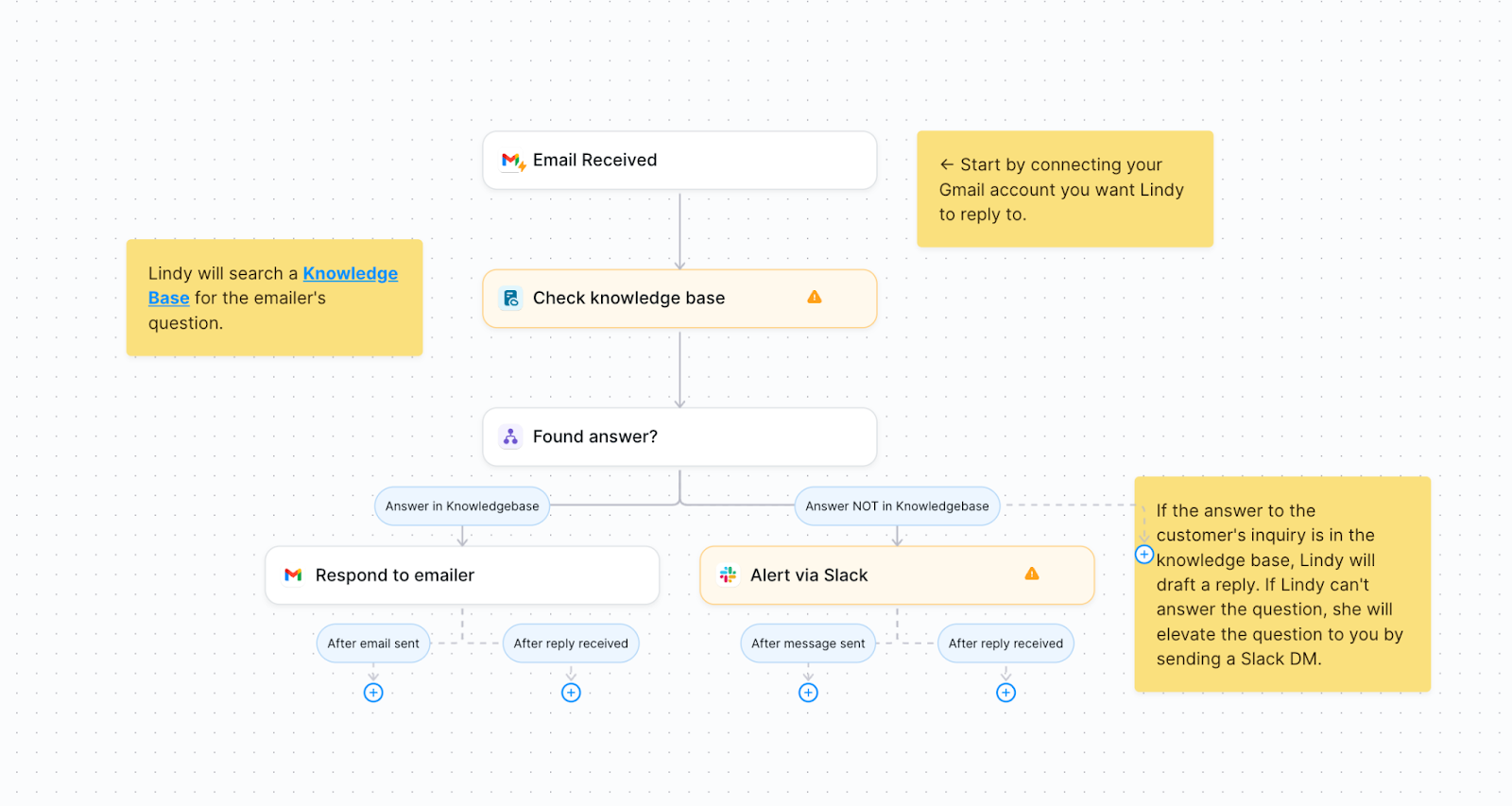 The workflow builder is where Lindy differs from every other AI email tool. It lets you connect the apps you use, like CRM or Notion, with your email to create multi-step automations visually.