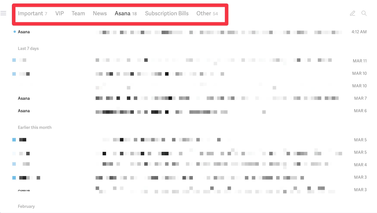 - Split Inbox for automatic email organization