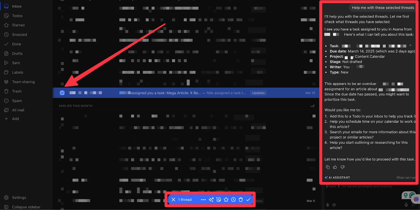 Team collaboration felt smooth, too. I could @mention colleagues inside email threads and assign tasks without switching tools. This reduced back-and-forth in Slack and kept our conversations tied to the messages that mattered.