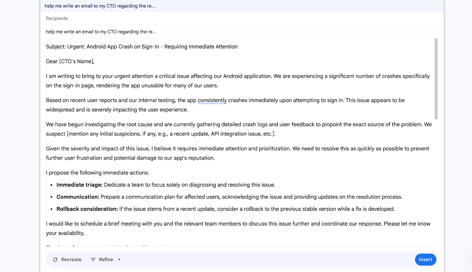 - Cannot draft new emails without user input
