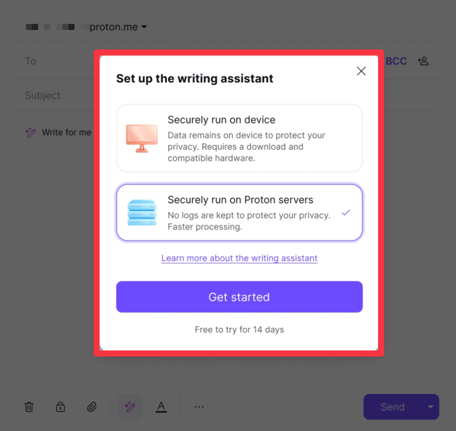 Your AI email assistant has access to your emails, so privacy is a must. Proton Scribe stands out because it lets you run the model locally on your device for maximum control. If you handle sensitive communication, this option can be important.