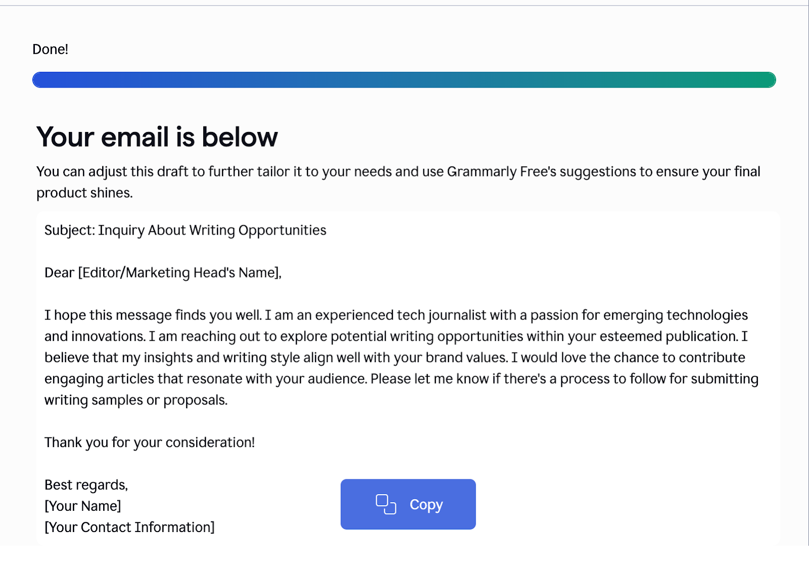 - Helpful tone options for different audiences