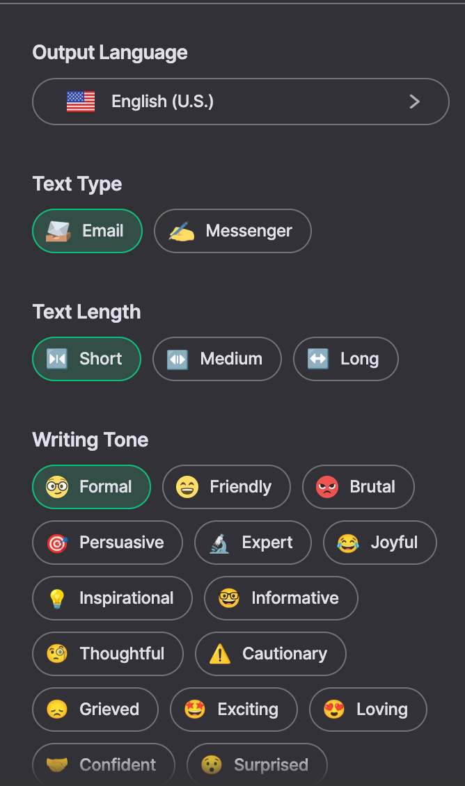 I tried different tones to see how well it adapted. The “expert” tone worked well for client-facing emails, giving me polished sentences without sounding stiff. Switching to “friendly” produced softer, more conversational replies that felt natural.