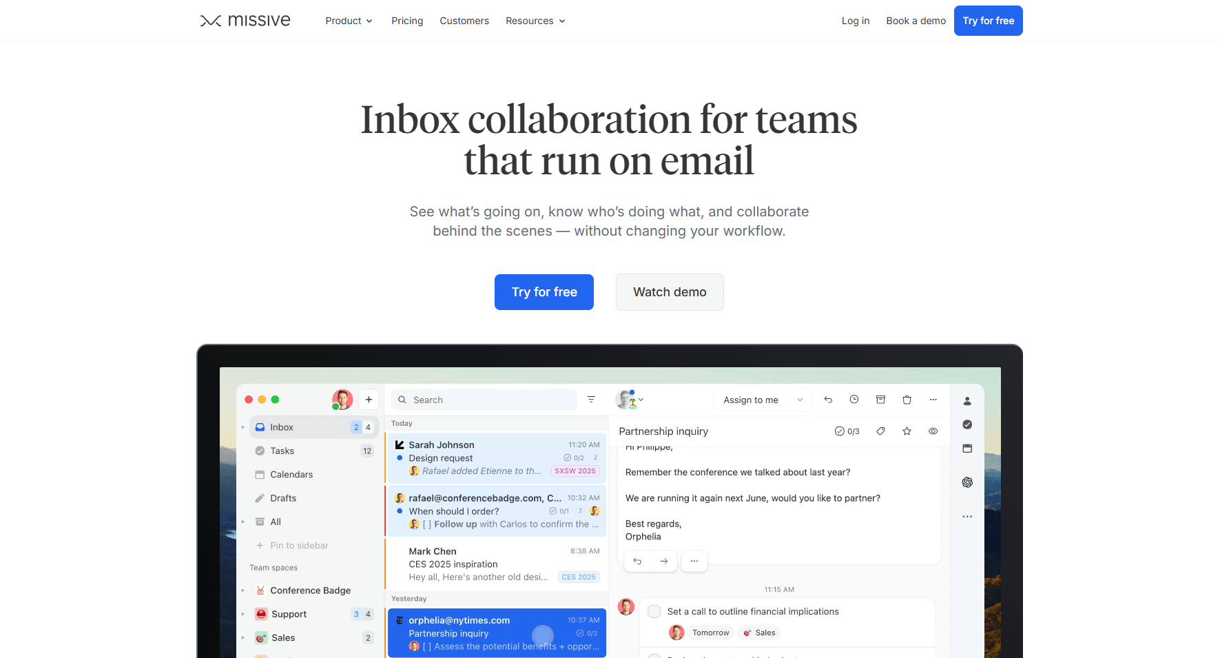 - Choose Missive if your team shares inboxes or delegates email tasks. It brings chat, assignments, and collaboration into one place.