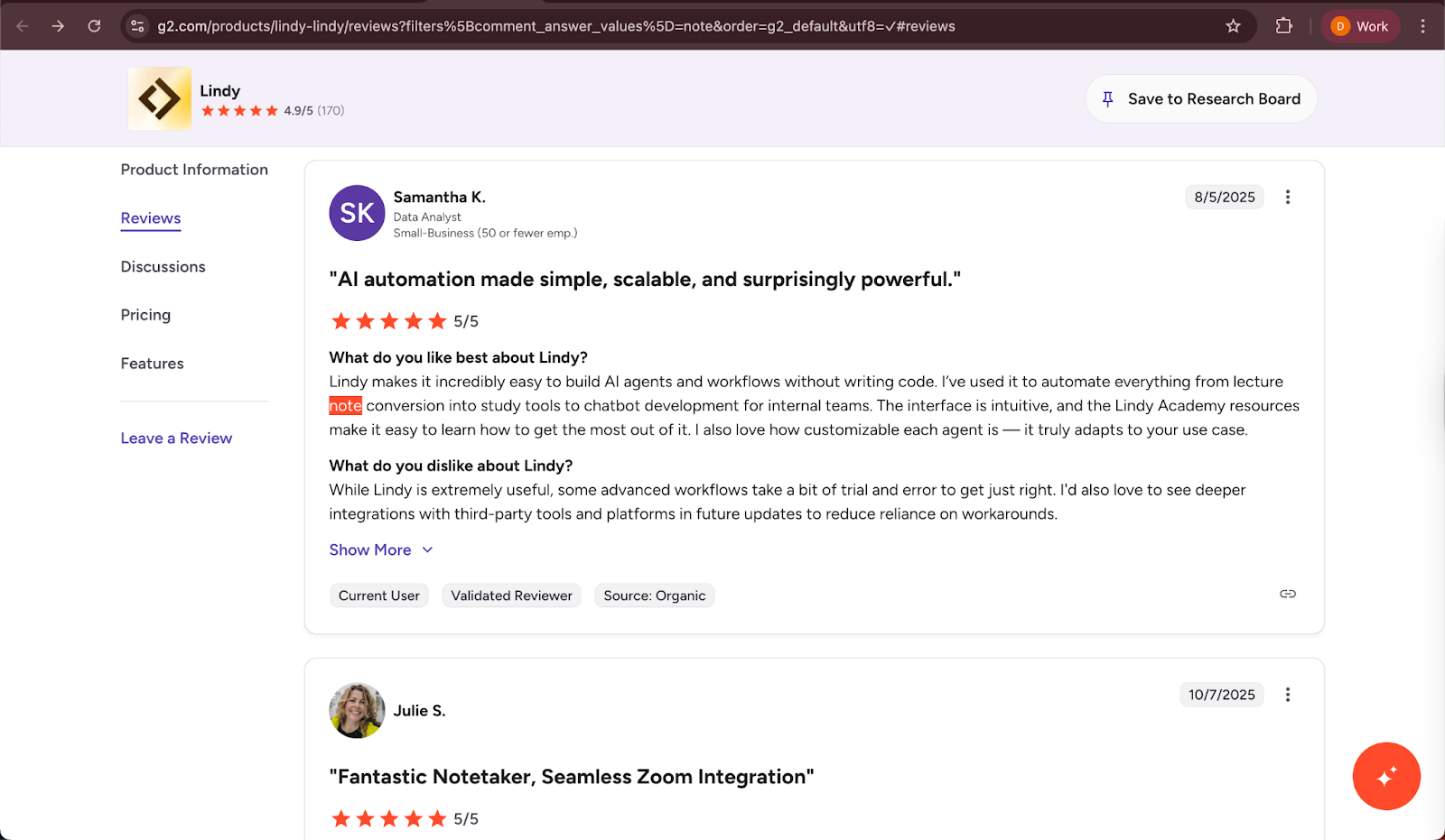 - “The note-taking capability is amazing, automatically capturing and reminding me of action items, which helps in meeting productivity.“ — Erny N, G2