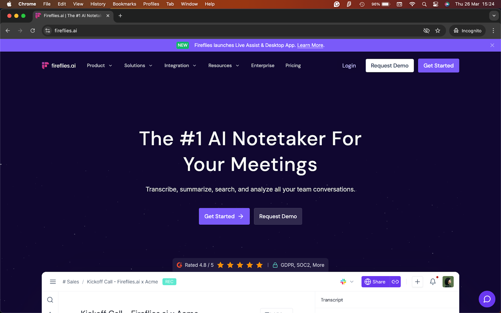 What it does: Fireflies.ai records, transcribes, and stores meetings so teams can search past calls and pull up decisions later.