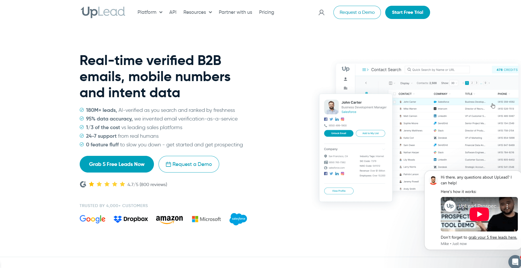 UpLead works well if you want reliable contact data without a heavy platform. It performs best for teams that need a fast and simple way to build prospect lists.