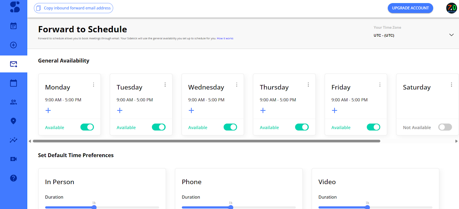 Sidekick AI is designed for people who spend too much time replying to meeting requests. Its standout feature, Forward to Schedule, lets you forward any scheduling email to a Sidekick address, and it handles the rest. It reads the request, checks your calendar, suggests a few curated time slots, and books the meeting without you needing to reply.