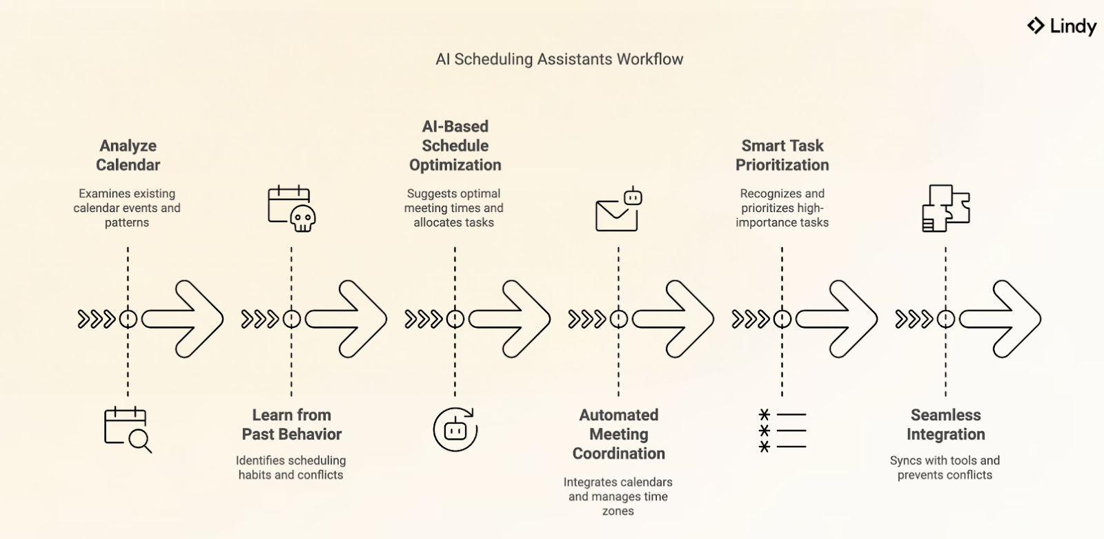 AI scheduling tools analyze your calendar, past behavior, and time preferences to make smart decisions about what gets scheduled and when.