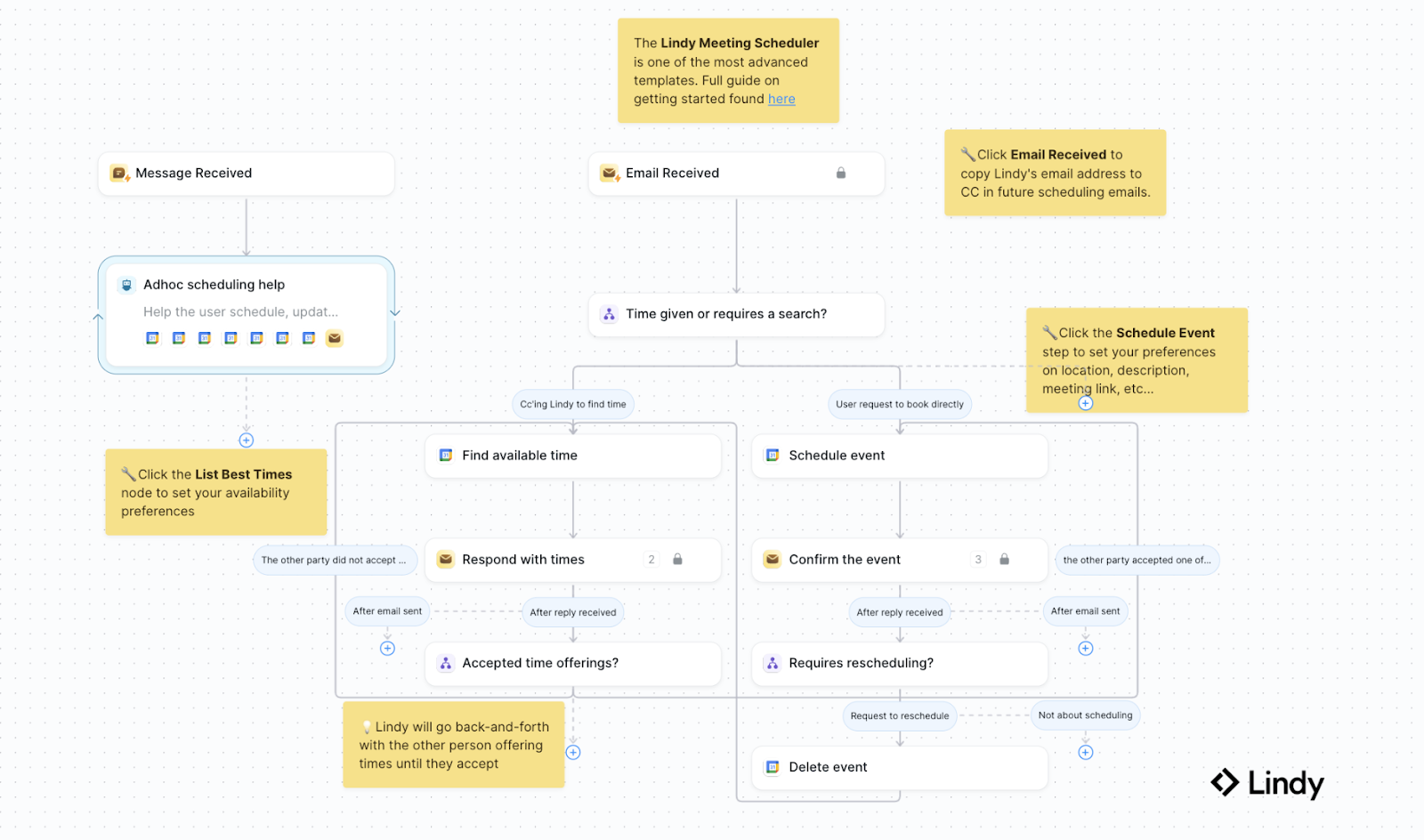 For example, they might give priority to high-stakes meetings or recurring work blocks. Some tools even allow customization for scheduling logic. Advanced tools like Lindy use multi-agent AI to handle complex workflows like call prep, document review, and automated follow-ups.