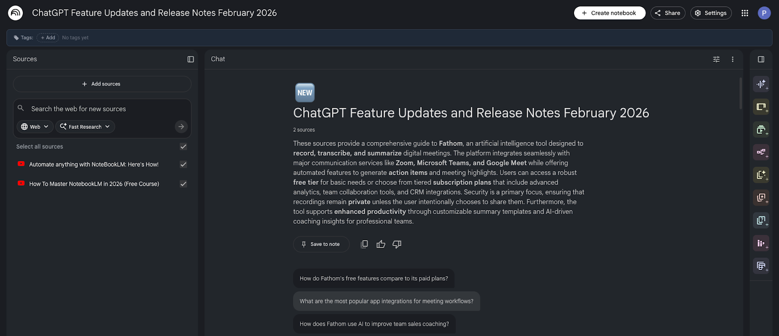 - Conducting faster research with citations: Research is becoming dramatically faster. Tools like Perplexity and NotebookLM help users gather sources, summarize documents, and extract key insights. Instead of opening dozens of browser tabs, people can review structured research results in minutes.