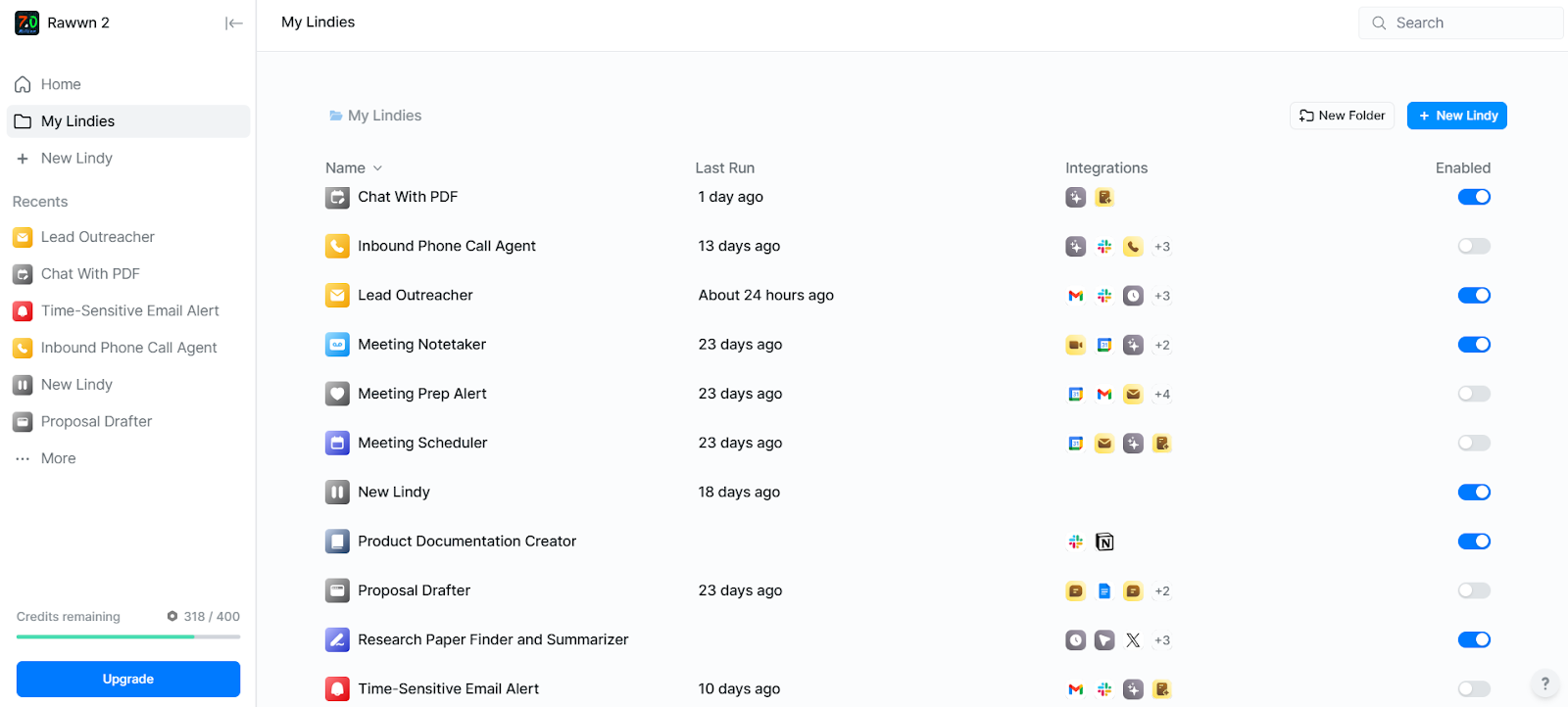 - 24/7 agent availability for async teams: You can set Lindy agents to run 24/7 for round-the-clock support, perfect for async workflows or round-the-clock coverage.