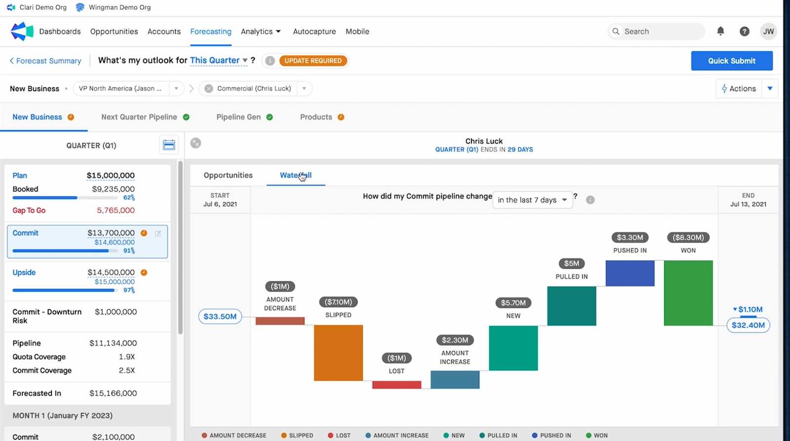 4. Clari: Best AI Sales Software for Real-Time Forecasting and Pipeline Visibility