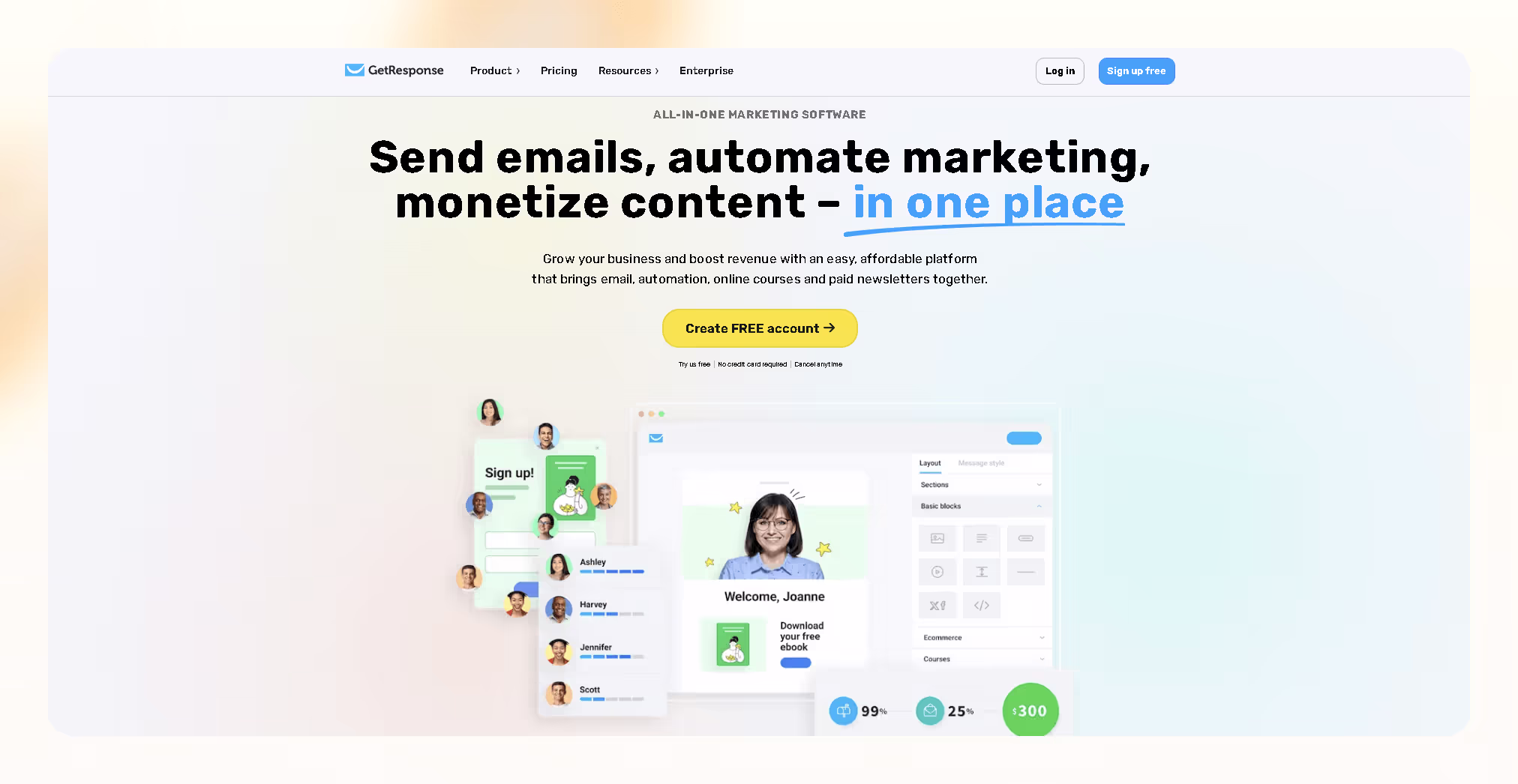 GetResponse is like that reliable friend who always shows up on time and gets the job done. It's an email marketing platform that's easy to use, affordable, and packed with features to help you grow your business.