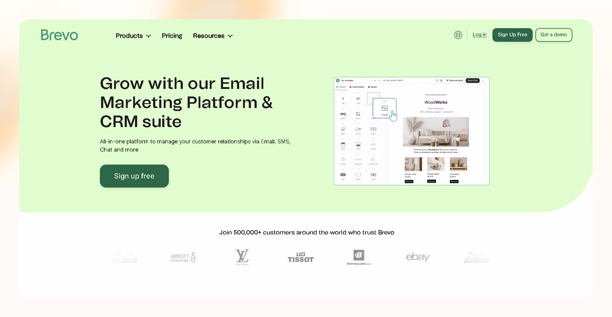 Brevo (formerly Sendinblue) is super versatile — email marketing, SMS campaigns, live chat, and even CRM, all in one platform.