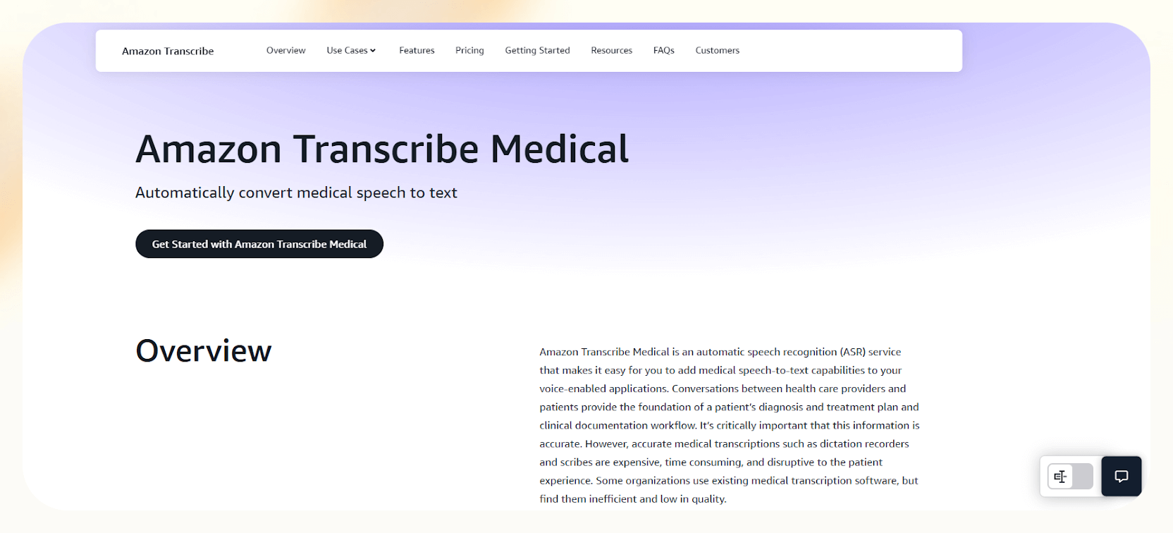 4. Amazon Transcribe Medical: Best for scalable medical transcription