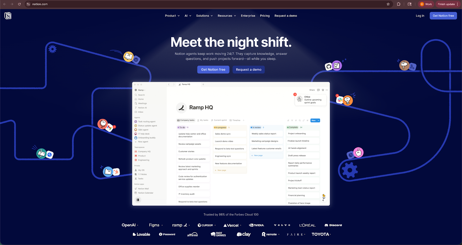 What it does: Notion combines notes, documents, tasks, and databases into one workspace where you can manage projects, organize information, and collaborate with your team.