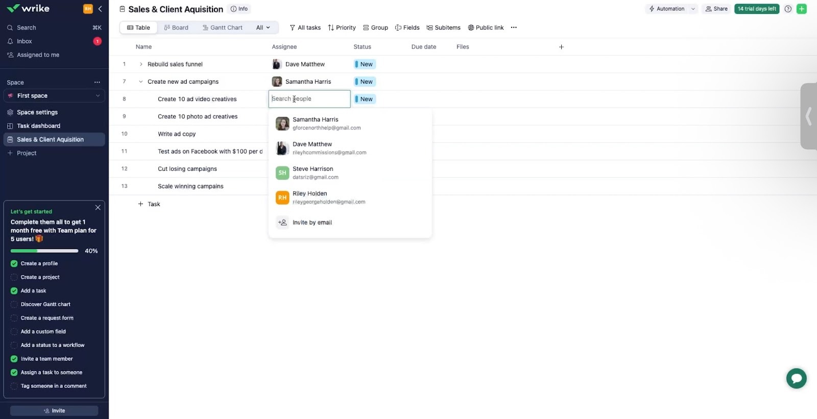 ClickUp can hold your entire workflow in one place. You start with tasks, set priorities, assign teammates, add due dates, and shape everything around that structure.