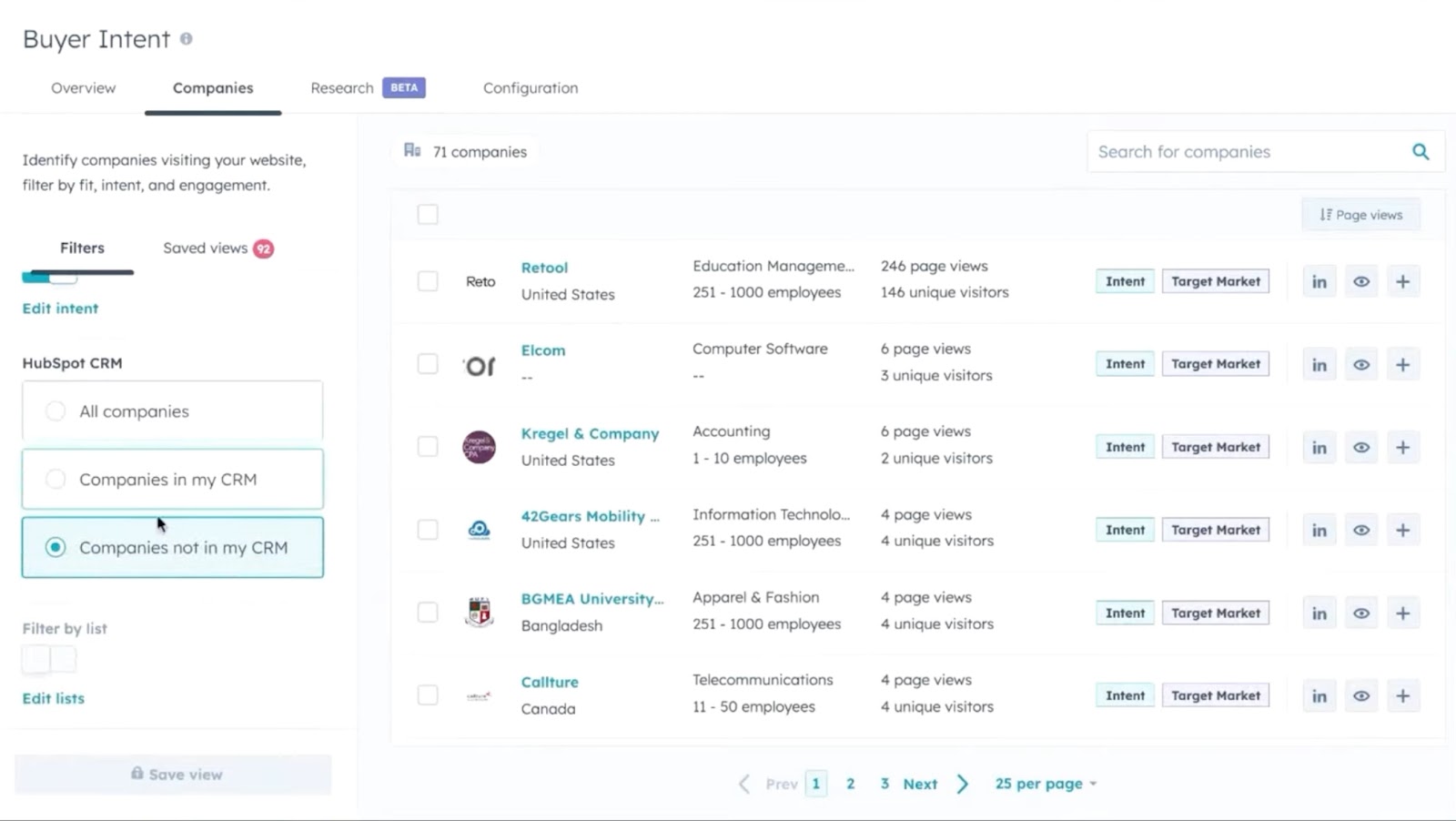 - Evaluated how well the tools identified in-market accounts: A core strength of Demandbase is its ability to surface accounts that are actively showing interest. So, I paid close attention to how each tool handled intent data, especially platforms like Bombora, 6sense, and Clearbit. I checked how they tracked research activity, how often their data refreshed, and how actionable those signals were for timing outreach.