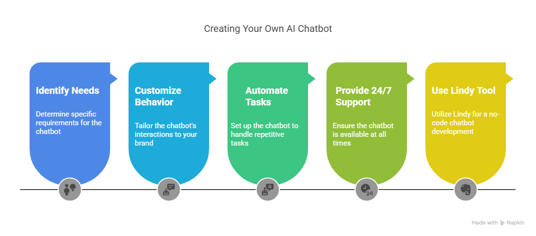 AI chatbots use natural language processing (NLP), machine learning, and custom logic. You feed them data, set up goals, and train them to respond intelligently. Tools like Lindy simplify this with no-code builders, letting you create custom bots without writing code.
