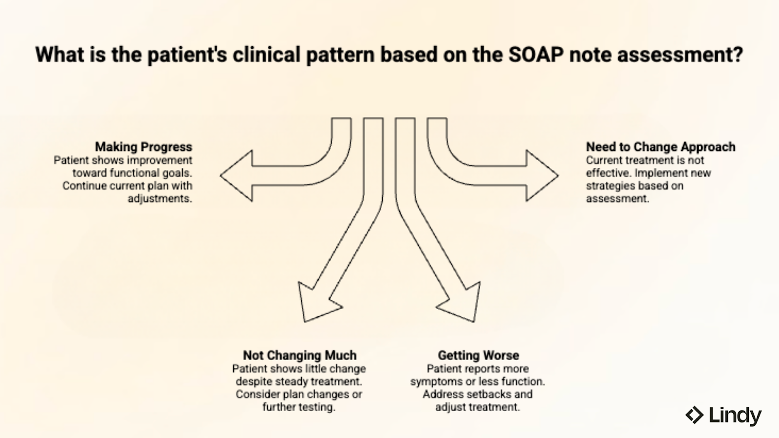 Most SOAP note assessments reflect one of these four clinical patterns:
