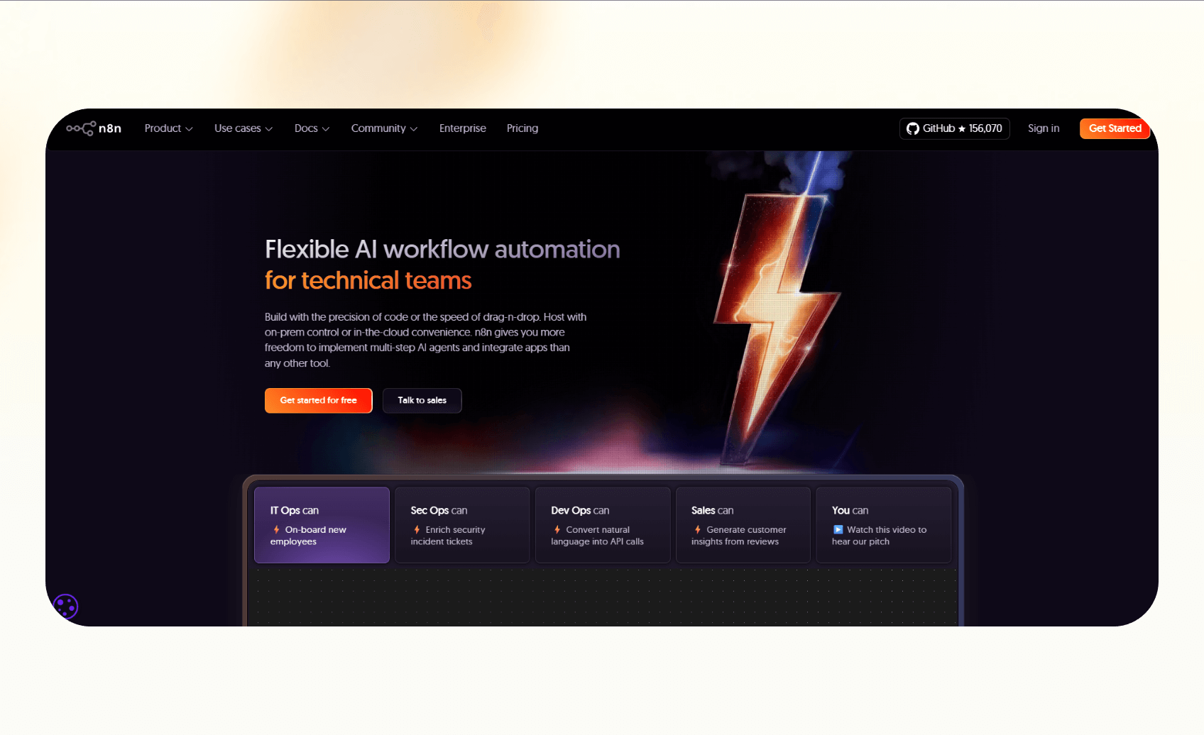 Who is it for? n8n is best for developers and technical teams that want customizations and privacy. It’s ideal for businesses that prefer to self-host their data or customize workflows beyond what cloud platforms allow.