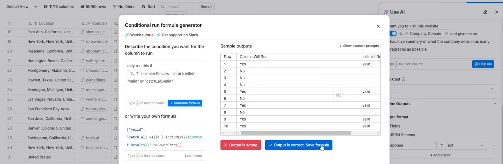 Once you upload a list of leads, it automatically extracts information like job titles, verified emails, company size, social profiles, tech stack, and recent funding rounds. If one source doesn’t return data, Clay checks another. This fallback system ensures your leads don’t come in half-baked.