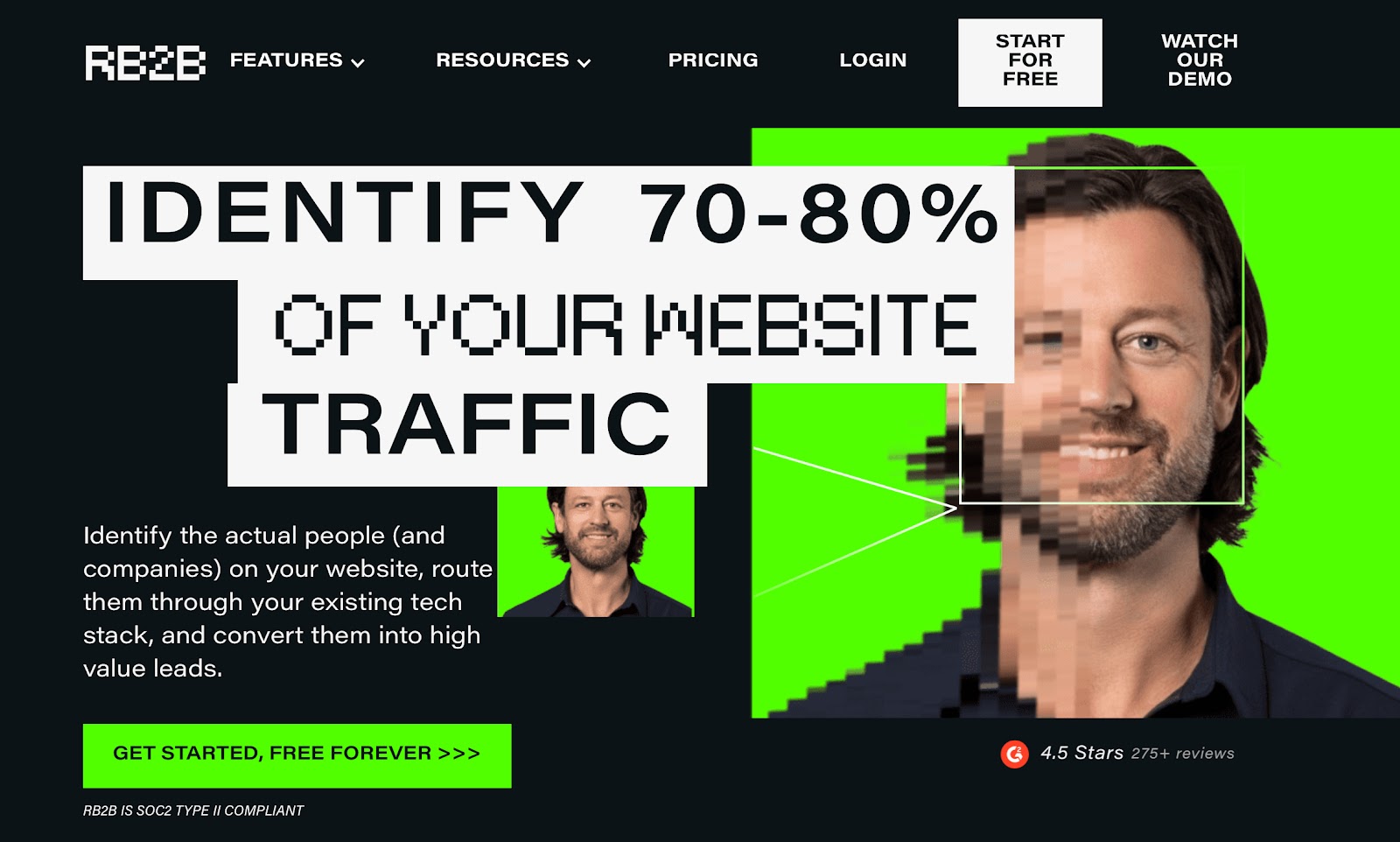 - RB2B: Best for enriching anonymous website traffic into actionable leads