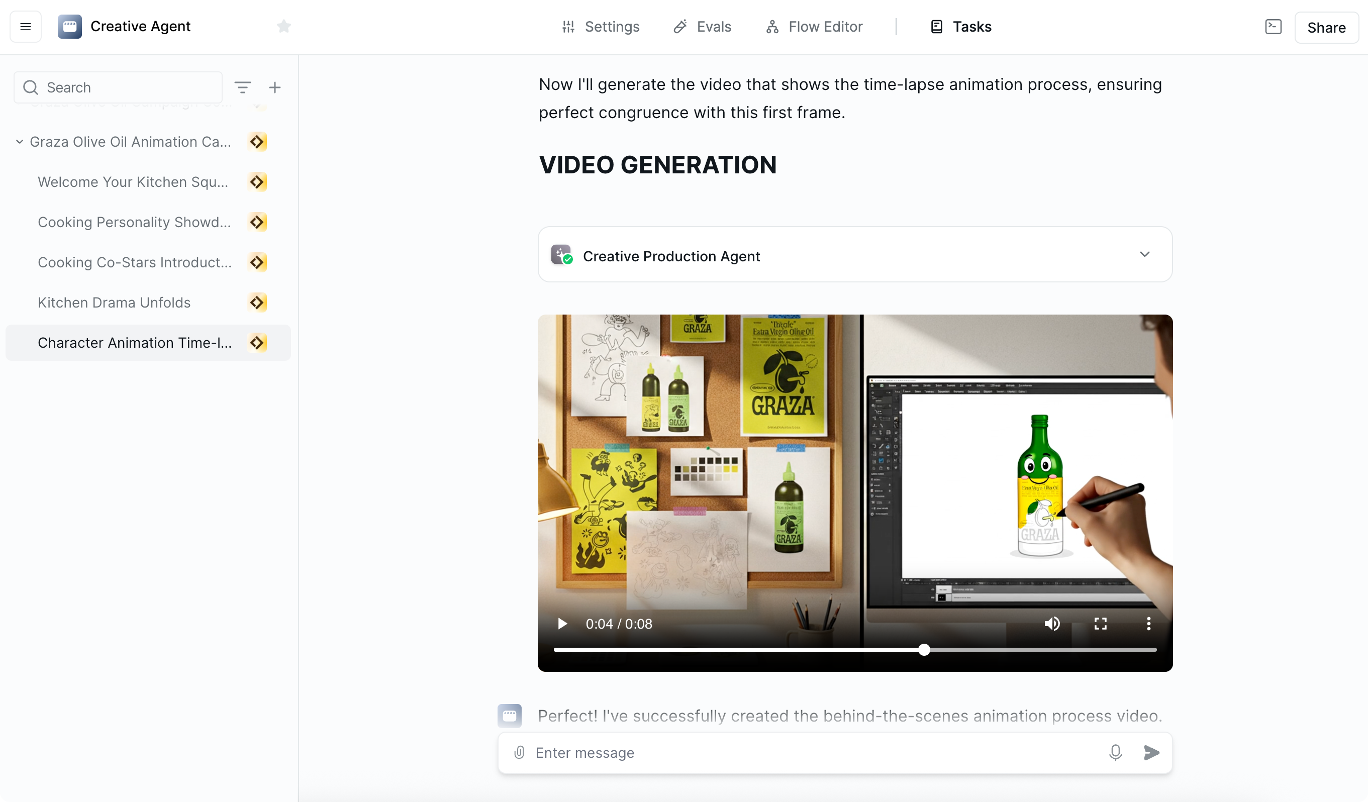 Analysis becomes execution in minutes. The Creative Agent writes copy, designs ads, and produces videos that perfectly fit your campaign brief. With integrations to the latest models from Veo 3.1, Nano Banana, Imagen, and Sora 2, this agent can spin up hundreds of ad variants and neatly organize everything in Airtable.