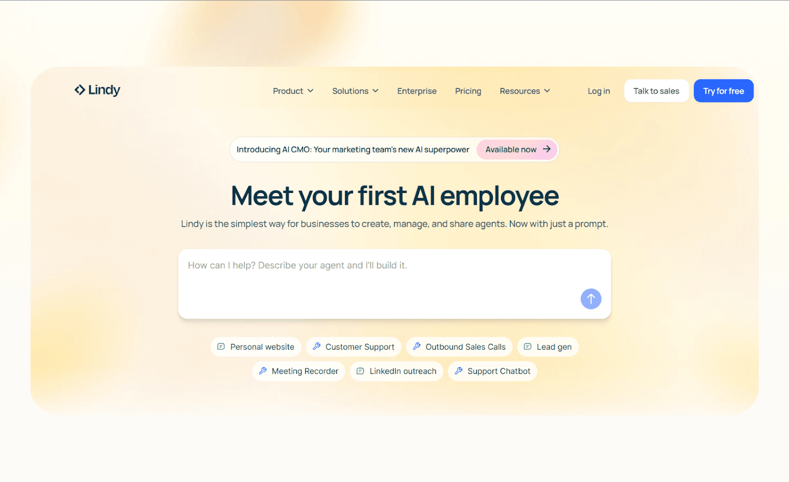Lindy is a no-code AI agent builder for non-technical teams that want to automate daily workflows. It combines drag-and-drop simplicity with advanced logic, making it easy to create AI agents for sales, customer support, and internal operations.