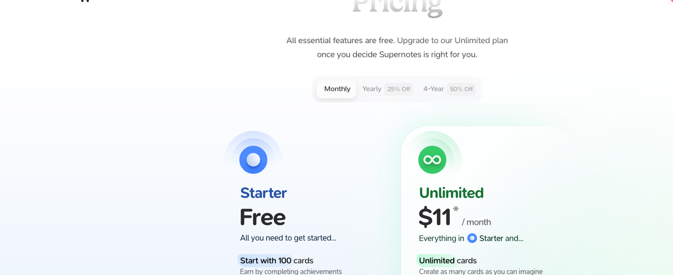- Free plan with 25 notes/month