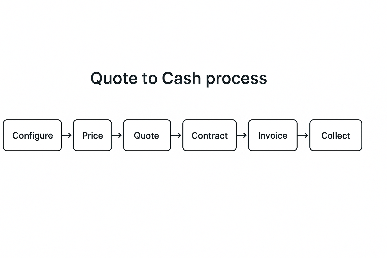The quote-to-cash process is the full journey from building a quote to renewing a contract. It links sales, legal, finance, and customer success in a single process.