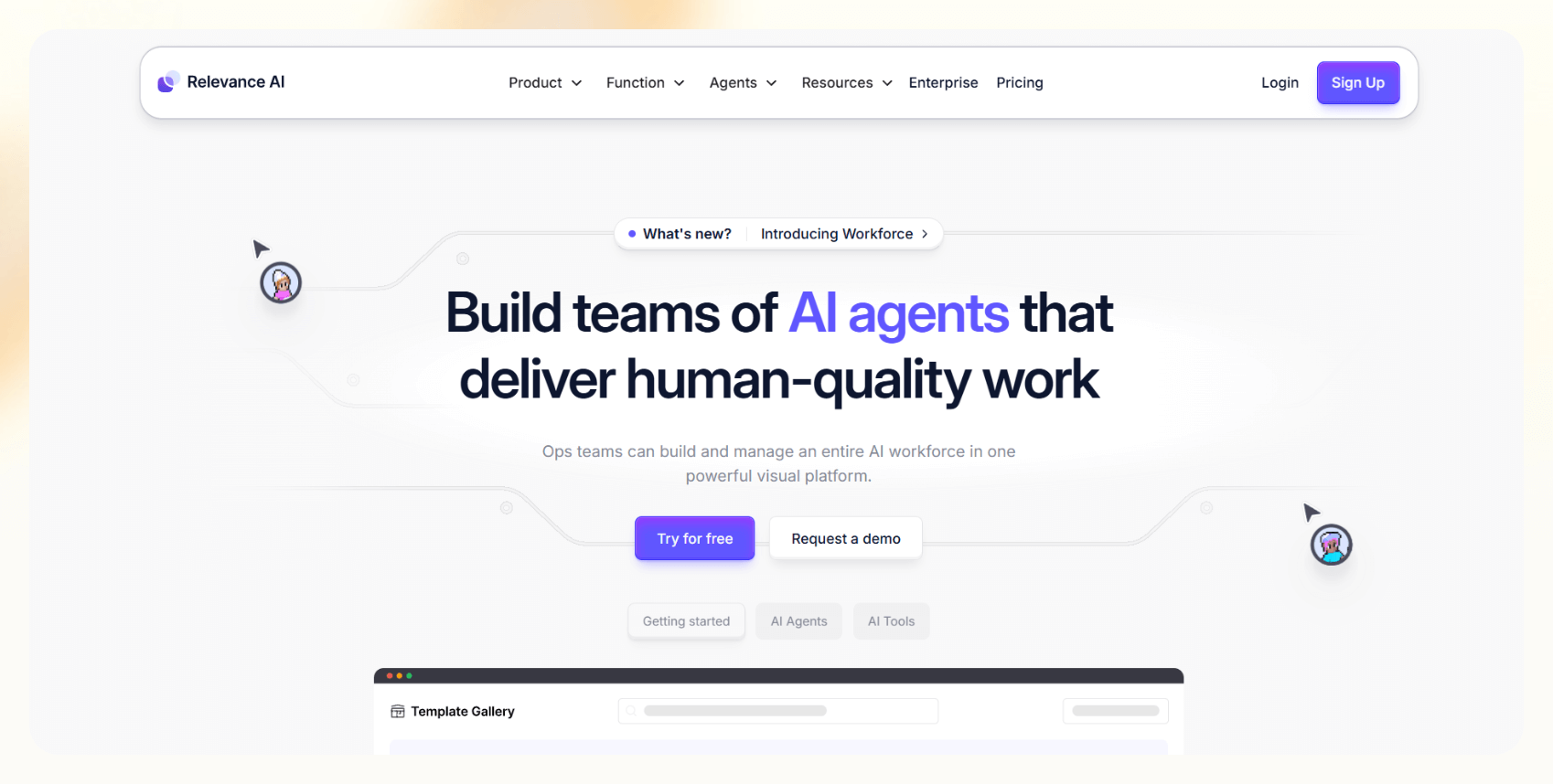 Relevance AI works well when the main job is thinking through information. For example, you can create a research agent that reads articles, extracts key points, compares sources, and hands you a concise brief. Or a sales prep agent that scans a prospect’s site, recent news, and call notes before a meeting.