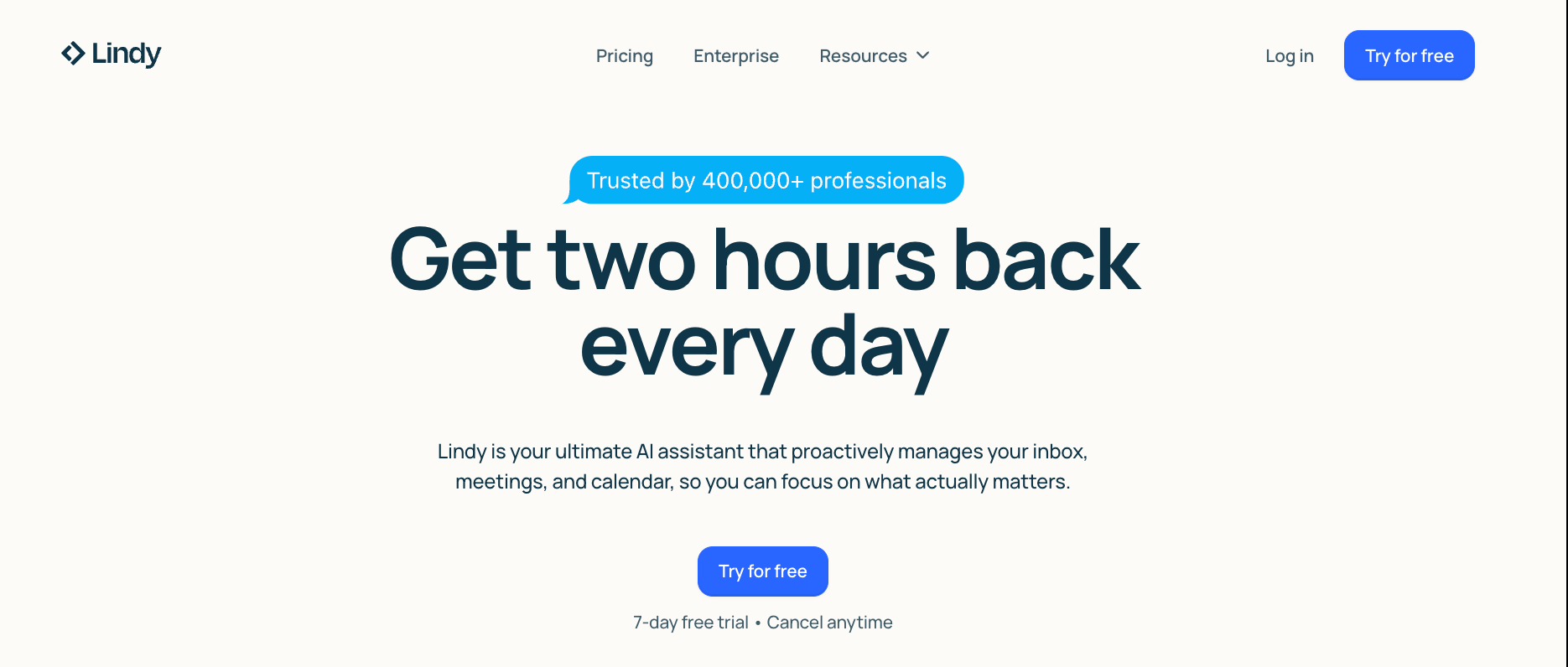 Lindy saves you two hours a day by proactively managing your inbox, meetings, and calendar, so you can focus on what actually matters.