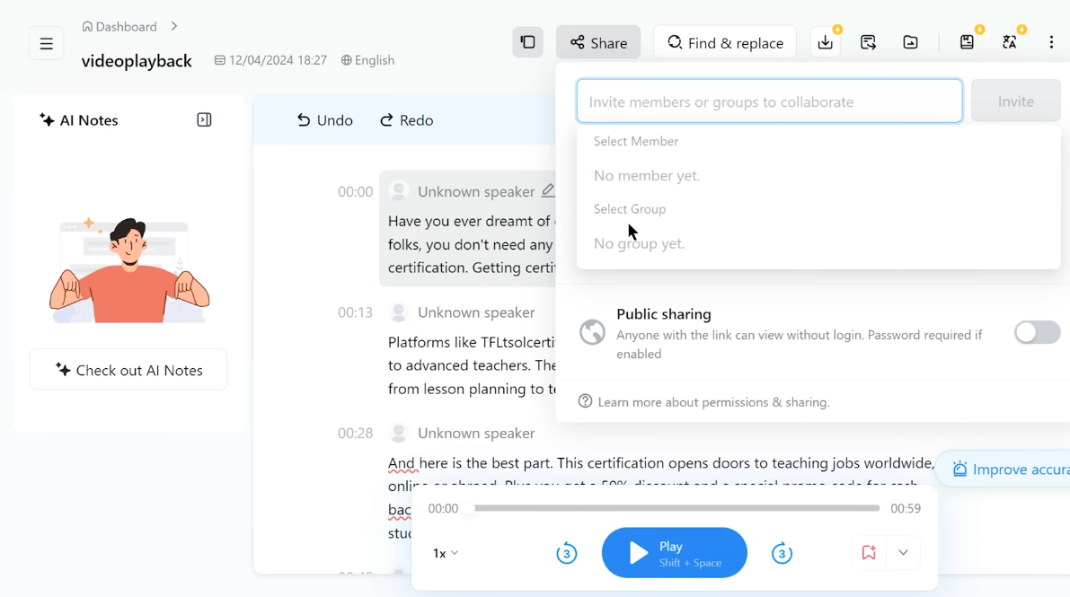 I also uploaded pre-recorded audio and video files, which Notta processed quickly. The transcripts arrived within minutes, with timestamps for easy navigation. Accuracy stayed consistent, and it handled accents and minor audio dips well.