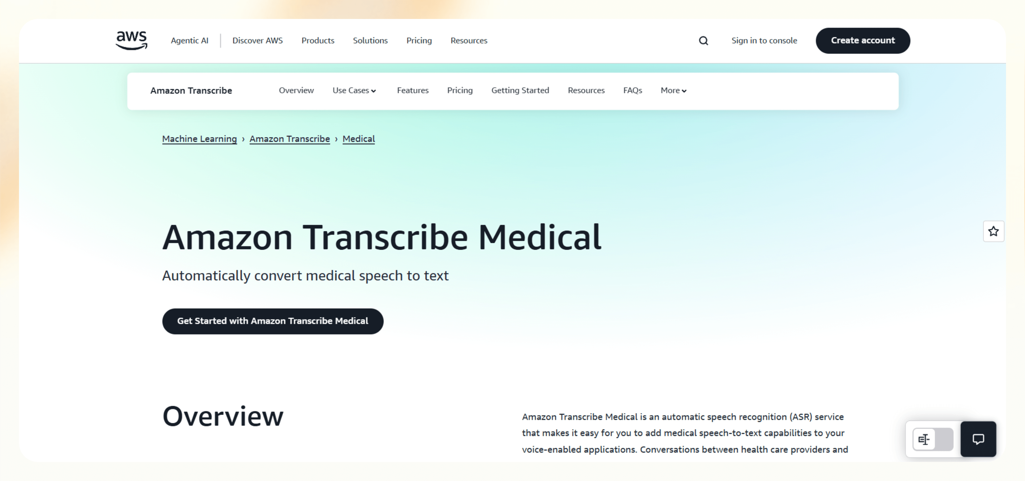 7. Amazon Transcribe Medical: Best for Custom-Built Dictation Tools