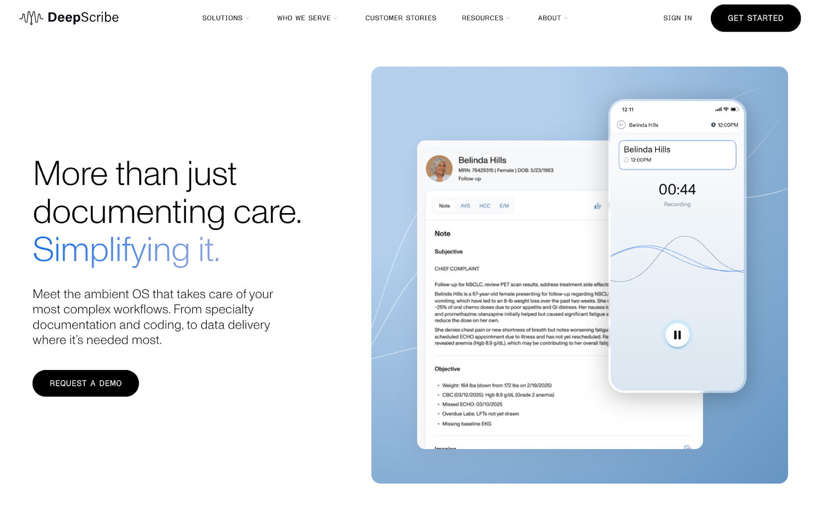 What it does: DeepScribe converts doctor-patient conversations into structured clinical notes.