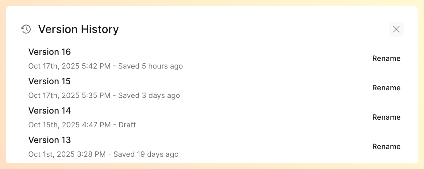 Introducing Versioning. Now you can see your version history and restore previous versions of your Lindy.